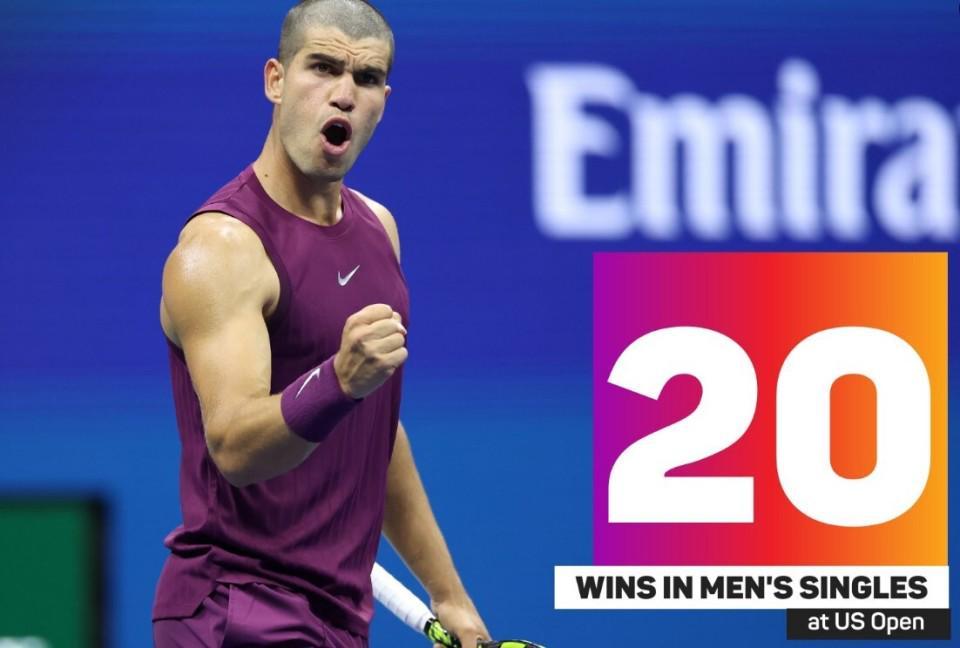 这场比赛是阿尔卡拉斯在美网的第20场胜利和大满贯第80胜,他成为了公开赛年代在美网取得20胜所用场次第2少的球员,仅次于美国传奇名宿约翰-麦肯罗。